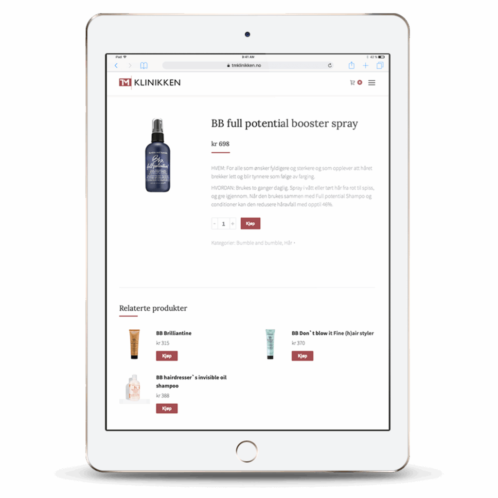 TM Klinikken ville ha en moderne og estetisk hjemmesiden med tilhørende nettbutikk- funksjon. Vi bygget den nye nettbutikken i Woocommerce slik at kunden kan redigere og legge ut nye produkter underveis. Hjemmesiden er selvfølgelig 100% responsiv og deres kunder kan enkelt handle deres varer direkte fra sofaen. Vi har også etablert en egen løsning for salg av gavekort hvor kunden selv kan bestemme ønsket beløp. Gavekortet blir sendt direkte til mottakeren, og betalingen skjer via Stripe.